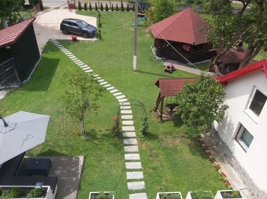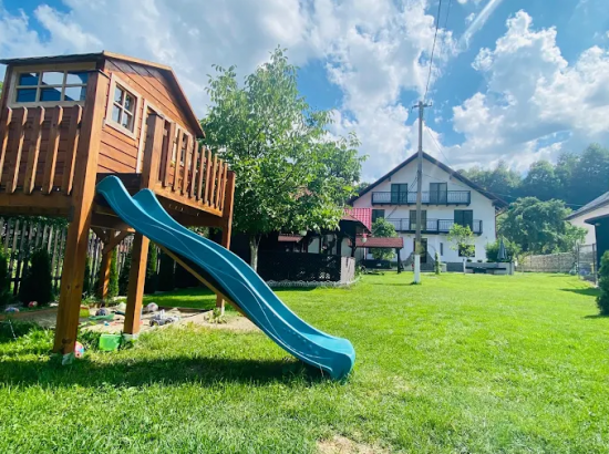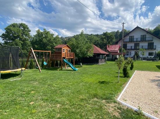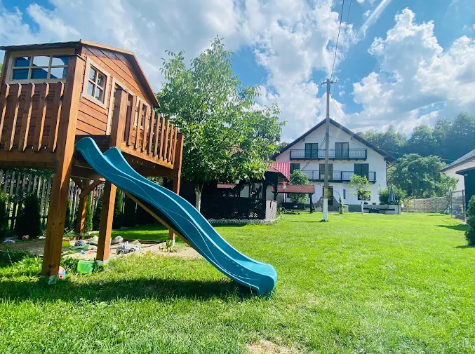 In curtea pensiunii va puteti bucura de spatiul verde, avand acces la foisor, gratar si leagan. Pentru copii am pregatit un loc de joaca care include casuta suspendata, tobogan, leagane, lada cu nisip si trambulina.
